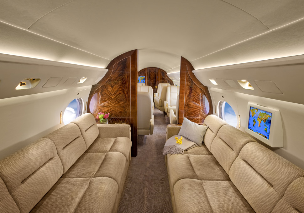 The generous 16-passenger cabin on our Gulfstream G-IVSP N763DB is configured with 10 executive seats and (2) 3-place divans finished in hand-stitched kip-skin leather and plush fabrics and features world-wide WiFi internet.